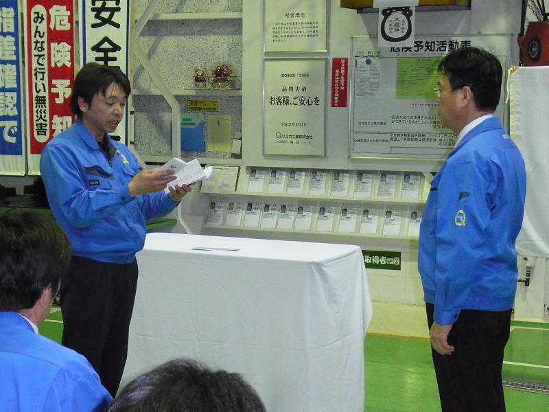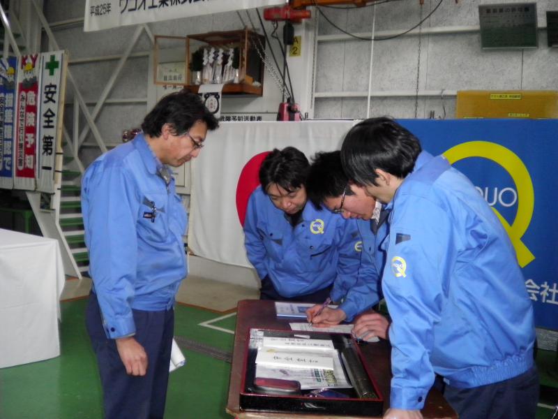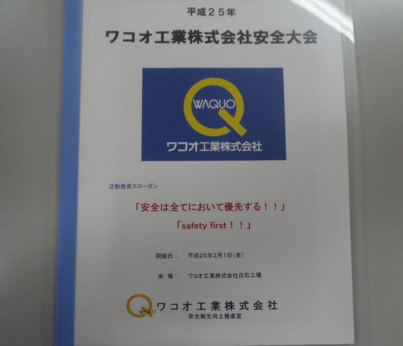 2013年2月1日、弊社白石工場にて平成25年の安全大会を執り行いました。 社員のほか、ご協力会社様にもご参加いただき、継続して無事故無災害を目指し、 全社一丸となって安全への取り組みを怠らないことを誓いました。